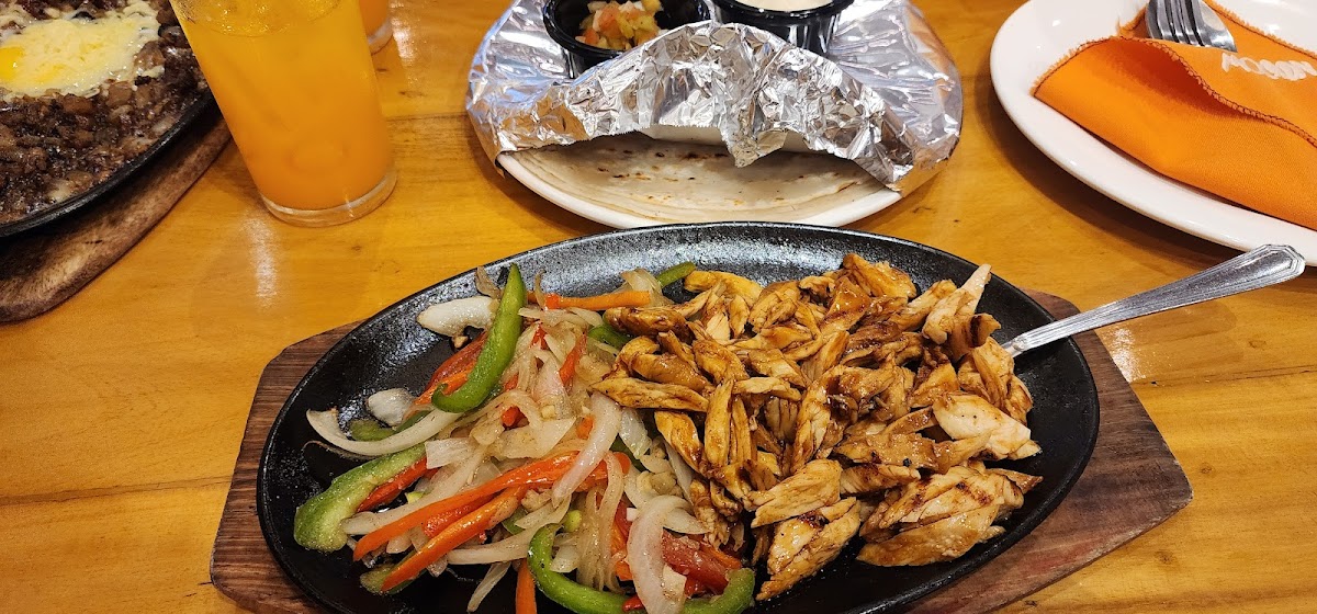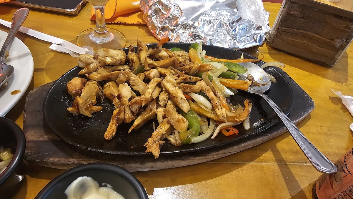 Chimichanga is delicious. Pork steak was a little salty and dry but it was okay. Chicken fajitas was on the salty side as well. The chicharones (fried pork belly) was tasty, although a little rubbery because it was overcooked(Not on the photo) Overall, the food is fine. Service was excellent. And Margarita was well blended.