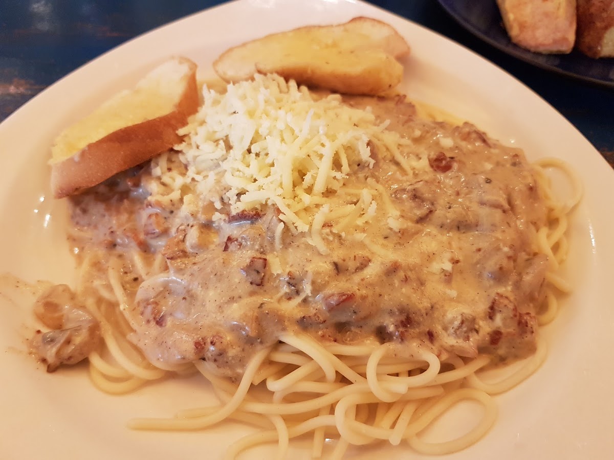 Not my first time at a Moon Cafe but this was my first time at Ayala Center Cebu's branch. We came earlier so it was still not crowded and boy do I love their place. Very cheerful ambience, colourful as it is screaming Mexican all over. Now the food, well they didn't disappoint. We ordered the Fish Mozzarella which was crispy, the fish still fresh and juicy and it blended well with the fresh tomato. We also the Creamy Pumpkin Soup, the Carbonara and the Taco Chips with beef and cheese lol. The staff is friendly and approachable. Only downside though is that their comfort room is unisex. So there's that. Also I should note that the place is very accessible from the nearest parking place. It is also located at the second level of the Ayala Terraces so when you arrive via the Terraces entrance there is an escalator leading to the second floor. Other than 5 stars. Will definitely come back.