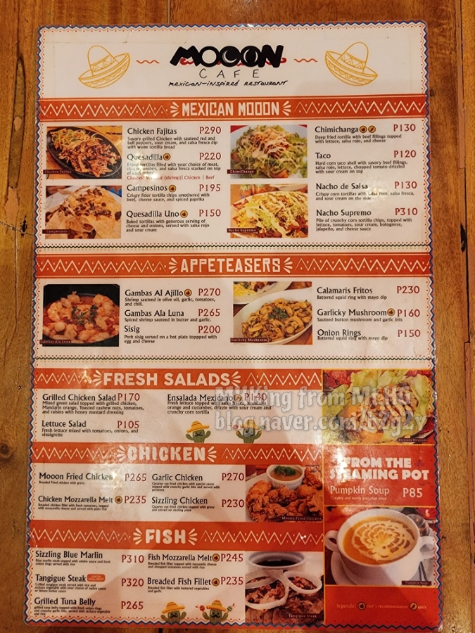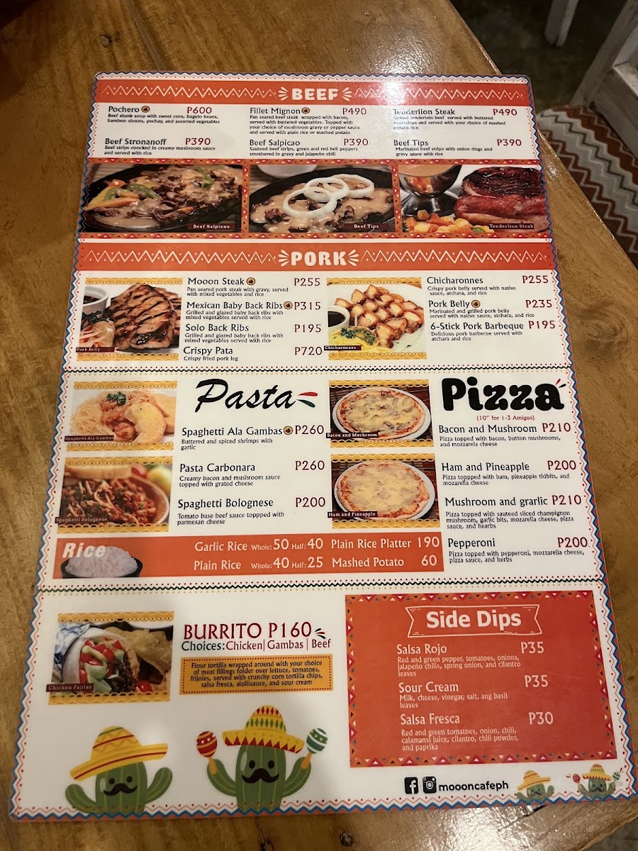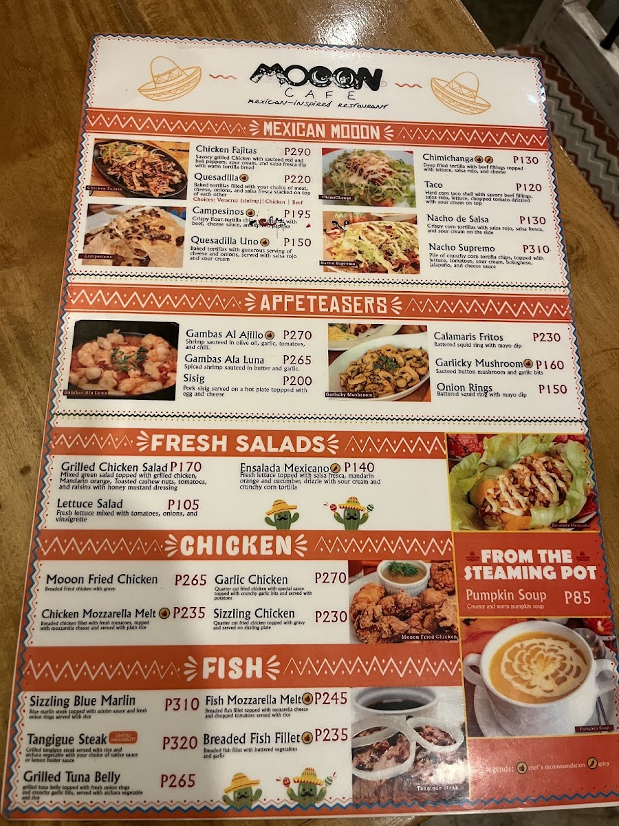 Welcome to Mooon Cafe, a vibrant dining spot nestled on Level 2 of The Terraces at Ayala Center in Cebu City. This lively restaurant immerses you in a cheerful, colorful Mexican ambiance that perfectly reflects the rich culinary traditions of Mexico. Patrons rave about their delightful menu, featuring standouts like the Fish Mozzarella—crispy yet juicy, harmoniously paired with fresh tomatoes. The Creamy Pumpkin Soup is another must-try, evoking warmth and comfort in every spoonful. The Chimichanga and Beef Salpicao also come highly recommended for those craving authentic flavors.